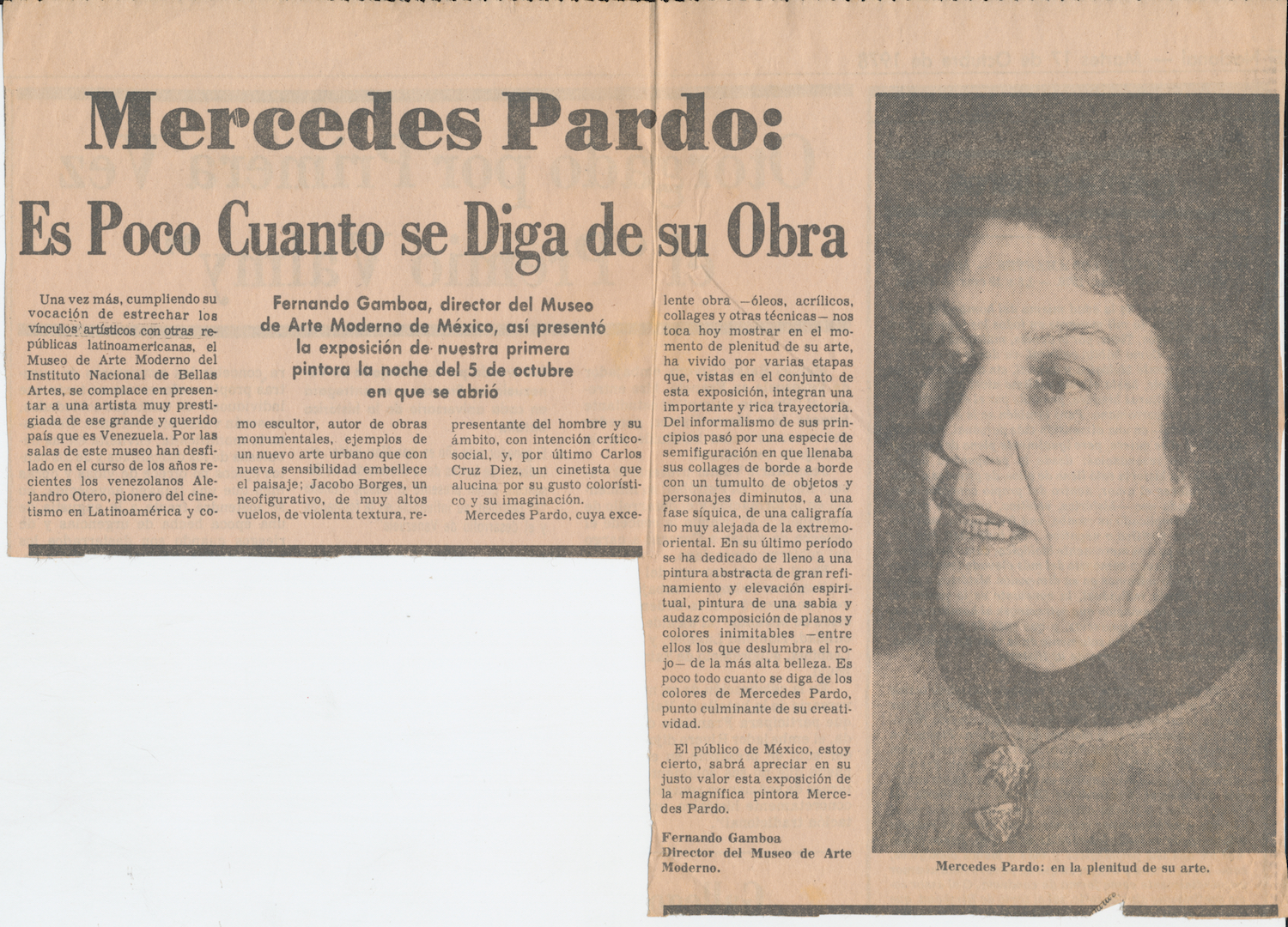 –Fernando Gamboa, ex-director del Museo de Arte Moderno de México, 1978. A propósito de su “Exposición Retrospectiva” en el museo